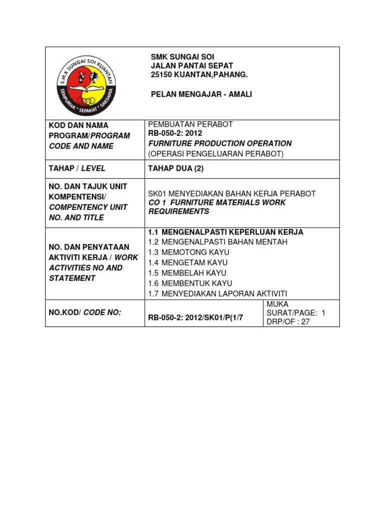 Program Pemantapan Kemahiran Operasi Pembuatan Perabot Skm Tahap 2 Laman Web Rasmi Smk Syed Alwi